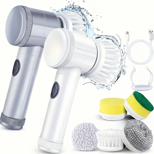 Elektryczna szczotka czyszcząca akumulatorowa 350 RPM – 5 końcówek | Do kuchni, łazienki, szyb
